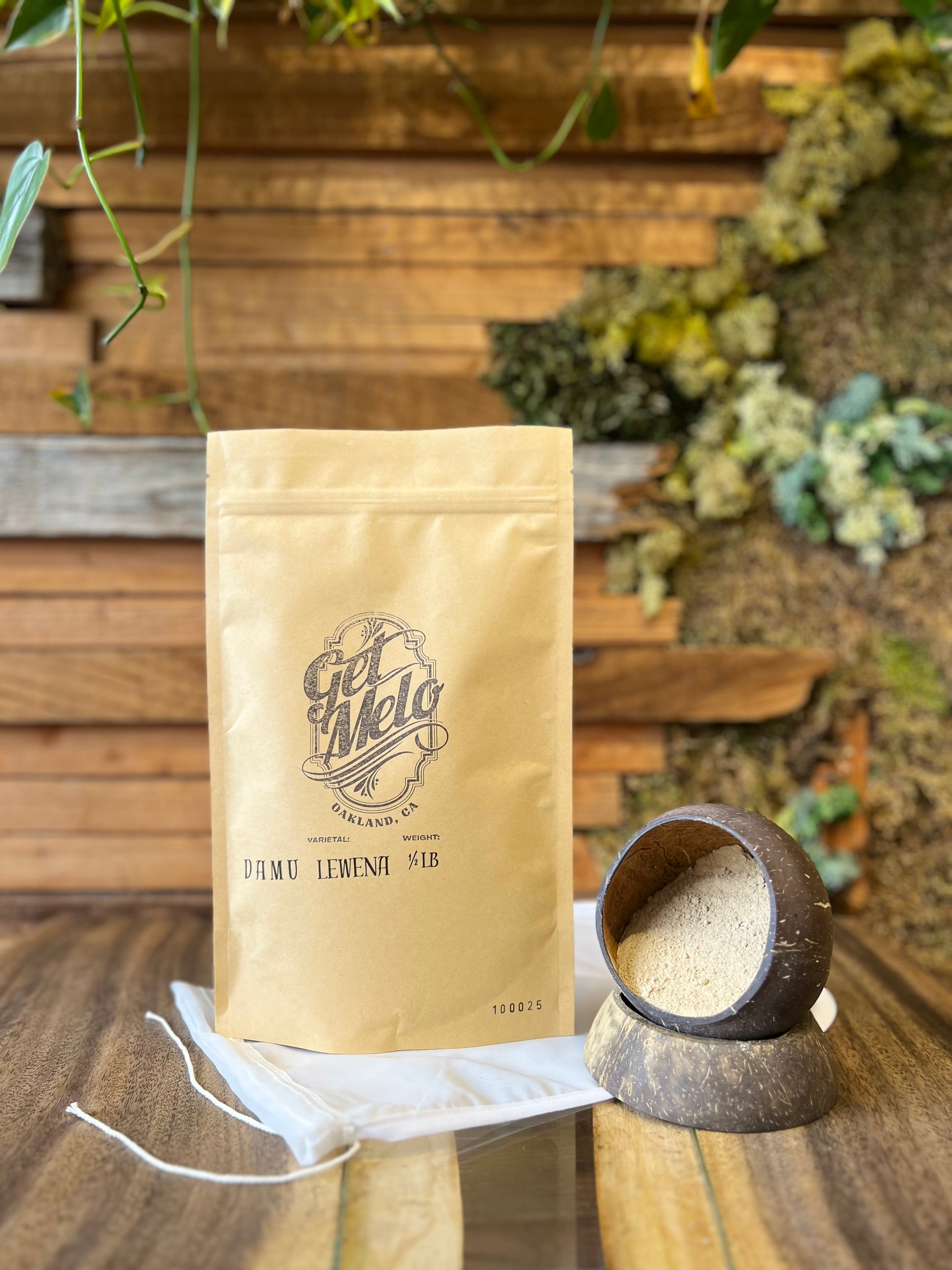 Damu Lewena [Fiji] Kava is a smooth, balanced noble variety crafted from the stump (Lewena) of mature Fijian kava plants. Known for its gentle flavor and calming, uplifting effects, this kava offers a more mellow and approachable experience—ideal for both new and seasoned drinkers.