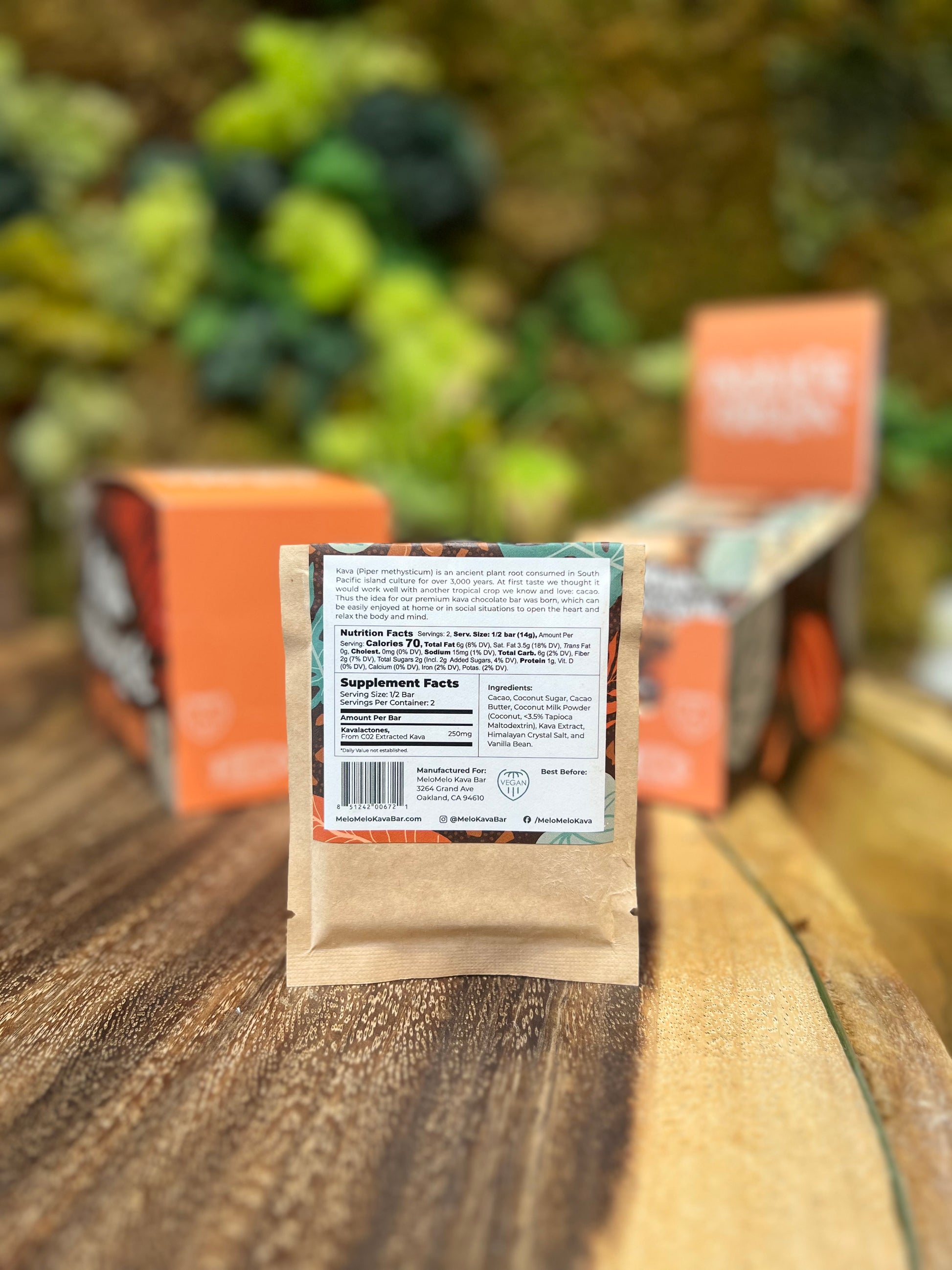 Ingredients: Cacao, Coconut Sugar, Coconut Milk Powder, Cacao Butter, Vanilla Bean, Salt, and Kava Extract.