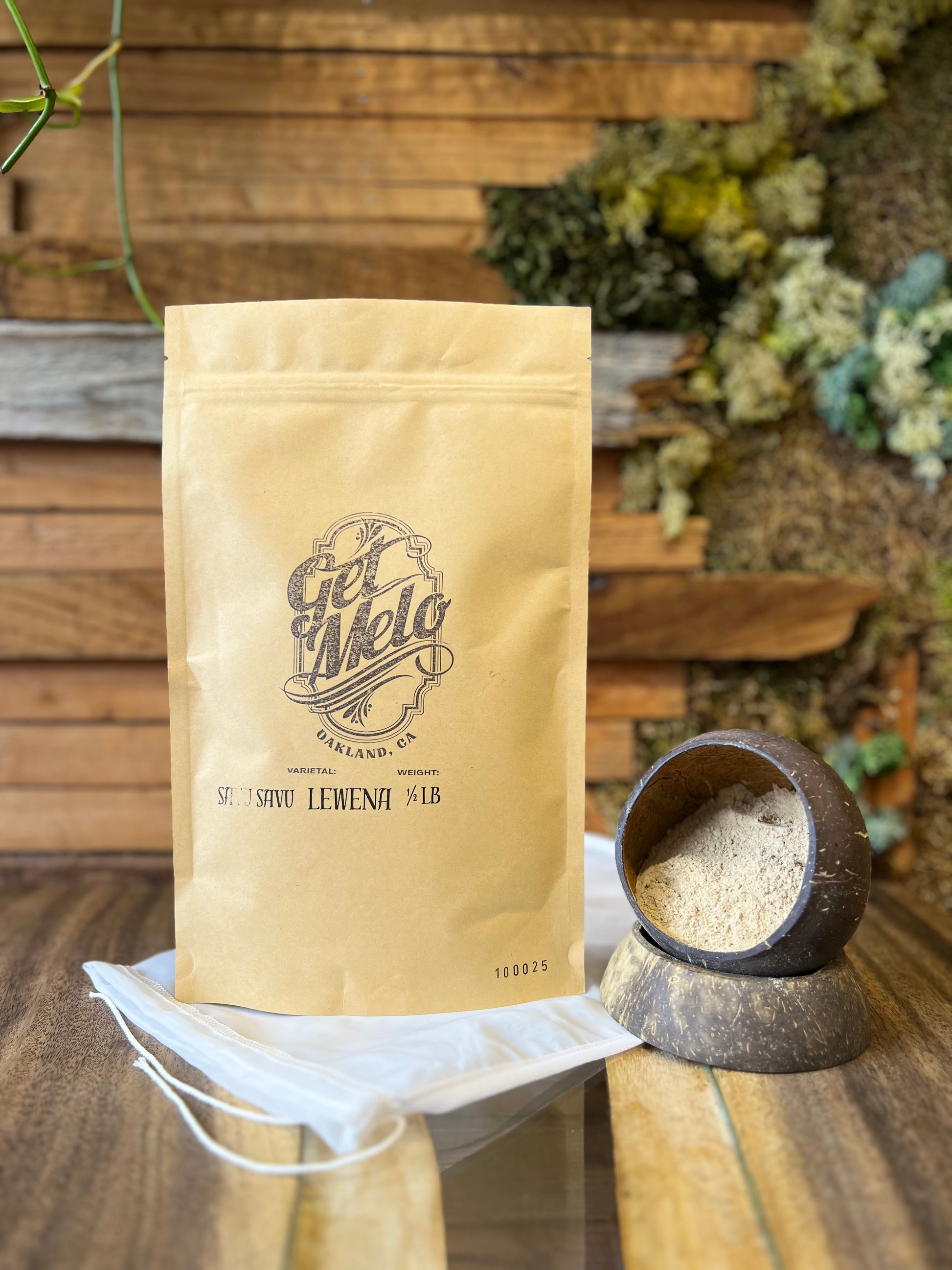 SavuSavu Lewena [Fiji] Kava delivers a smooth, mellow noble experience sourced from the stump (Lewena) of fully matured Fijian plants. Its gentle taste and naturally uplifting calm make it an inviting option for both newcomers and longtime kava lovers.